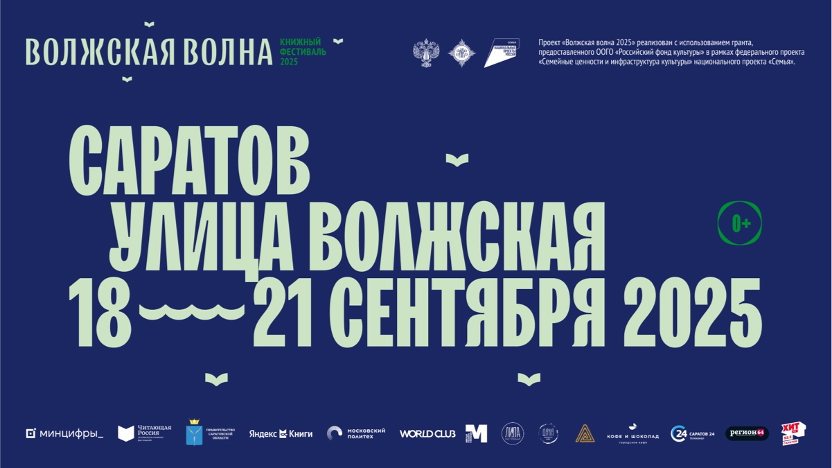 Книжный фестиваль «Волжская волна» организован Правительством Саратовской области при поддержке Министерства цифрового развития, связи и массовых коммуникаций РФ в рамках проекта «Читающая Россия».